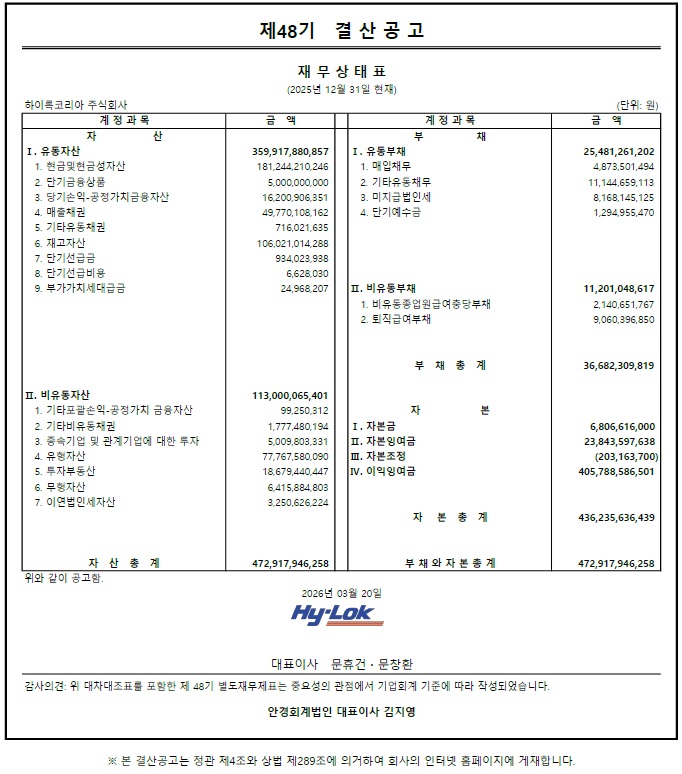제48기 결산공고입니다.