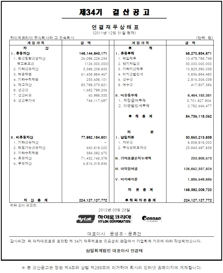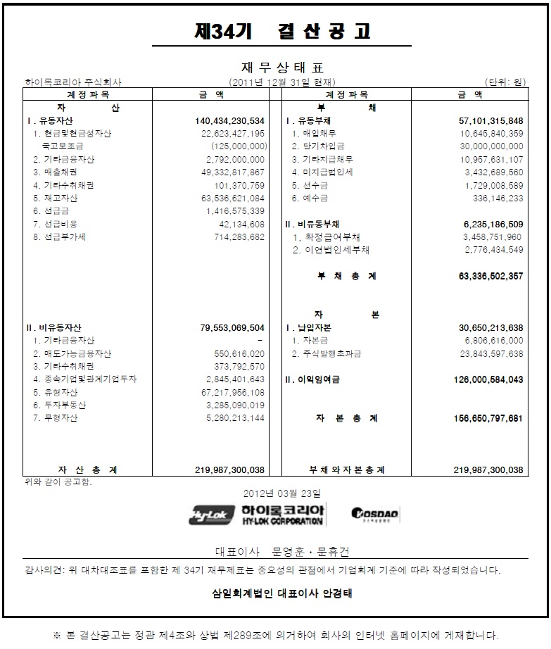 제34기 결산공고