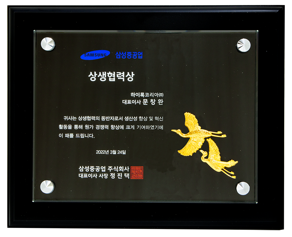 Hy-Lok Corporation has been awarded a Best Contribution Award on Mar 24th, 2022 from Samsung Heavy Industries.